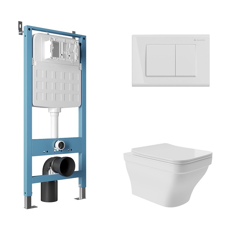 Aqueduto AQDS167 AQD комплект: TECNICA Novo Система инсталляции для подвесного унитаза, QUADRADO Панель смыва, белый глянцевый, ESTETA Унитаз подвесной 520*370 безободковый, сиденье с микролифтом, белый глянцевый