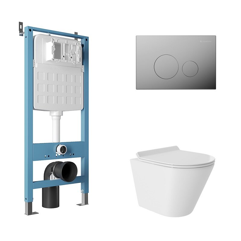 Aqueduto AQDS173T AQD комплект: TECNICA Novo Система инсталляции для подвесного унитаза, CIRCULO Novo Панель смыва, хром, CONE Tornado S Унитаз подвесной 480*360 безободковый, Tornado, сиденье с микролифтом, белый глянцевый