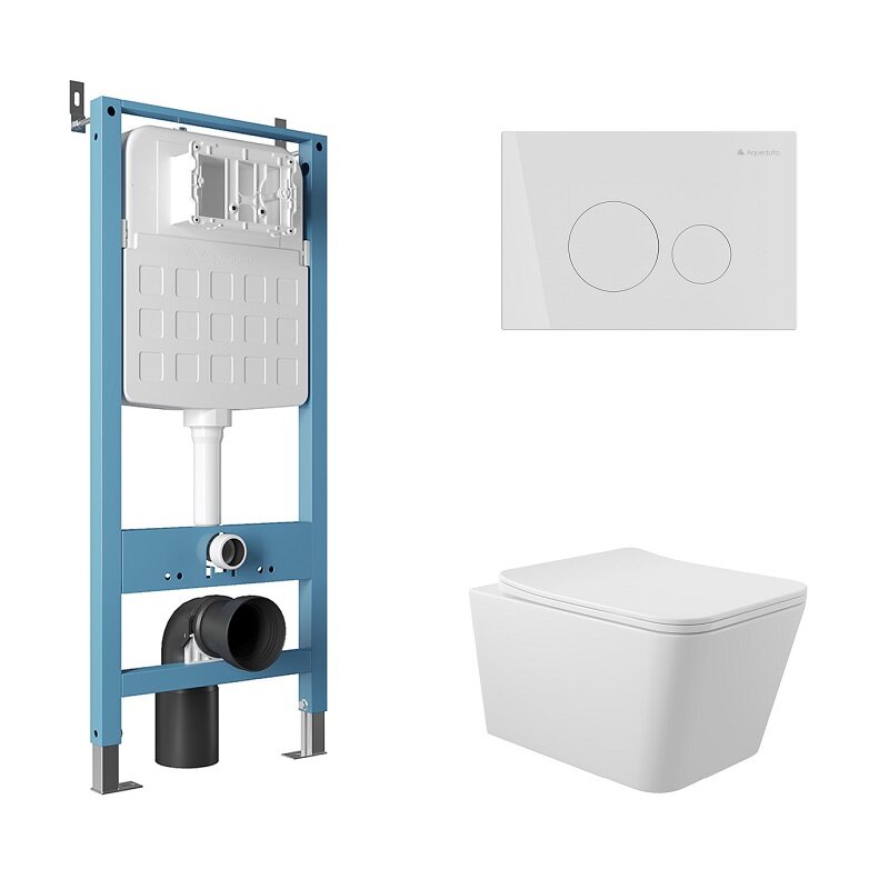 Aqueduto AQDS180 AQD комплект: TECNICA Novo Система инсталляции для подвесного унитаза, CIRCULO Novo Панель смыва, белый глянцевый, MACIO Унитаз подвесной 520*370 безободковый, сиденье с микролифтом, белый глянцевый