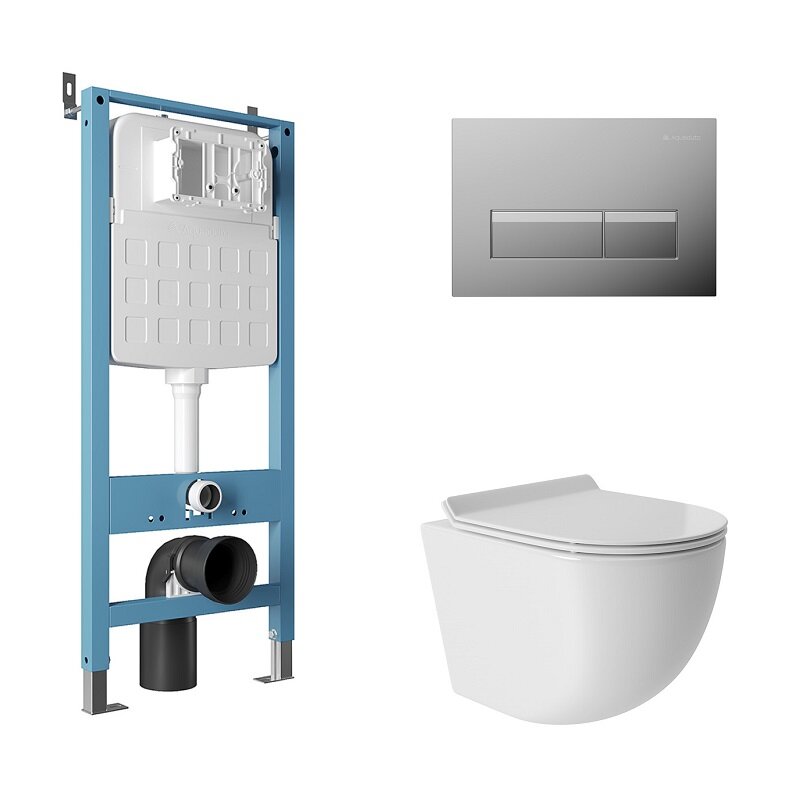 Aqueduto AQDS196T AQD комплект: TECNICA Novo Система инсталляции для подвесного унитаза, RETANGULO Novo, Панель смыва, хром, OVO Tornado S унитаз подвесной 480*360 безободковый, Tornado, сиденье с микролифтом, белый глянцевый