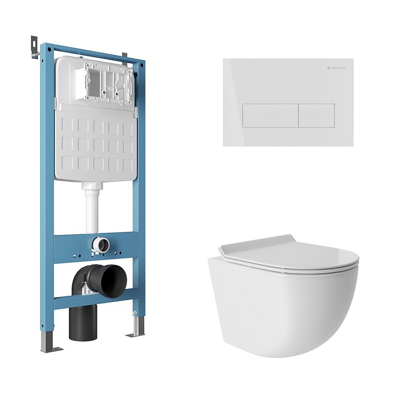 Aqueduto AQDS205T AQD комплект: TECNICA Novo Система инсталляции для подвесного унитаза, RETANGULO Novo, Панель смыва, белый глянцевый, OVO Tornado S унитаз подвесной 480*360 безободковый, Tornado, сиденье с микролифтом, белый глянцевый