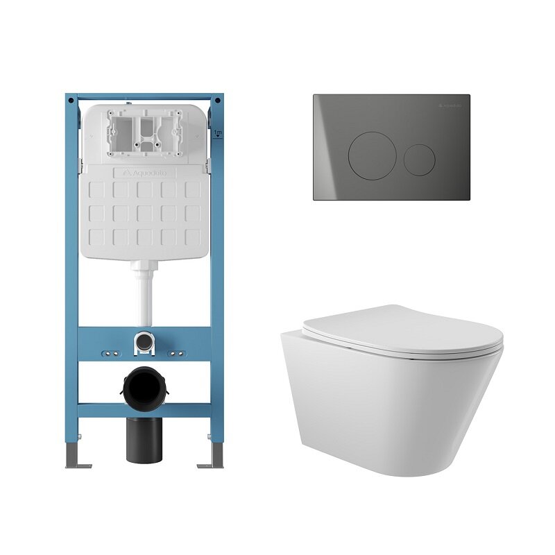 Aqueduto AQDS224 AQD комплект: TECNICA Novo Система инсталляции для подвесного унитаза, CIRCULO Novo Панель смыва, оружейная сталь, CONE Унитаз подвесной 525*360 безободковый, сиденье с микролифтом, белый глянцевый