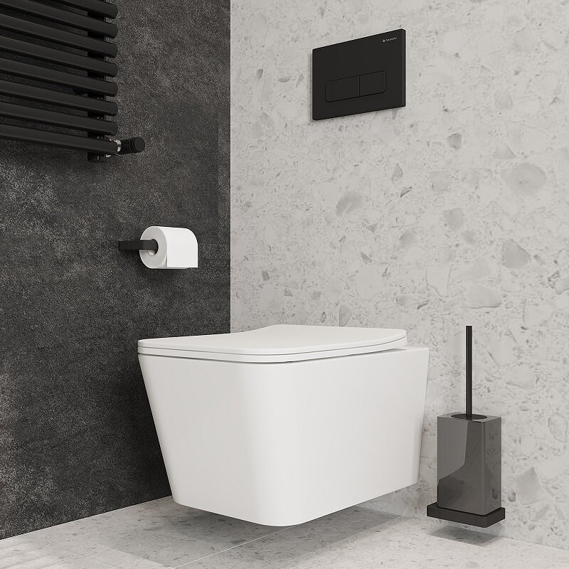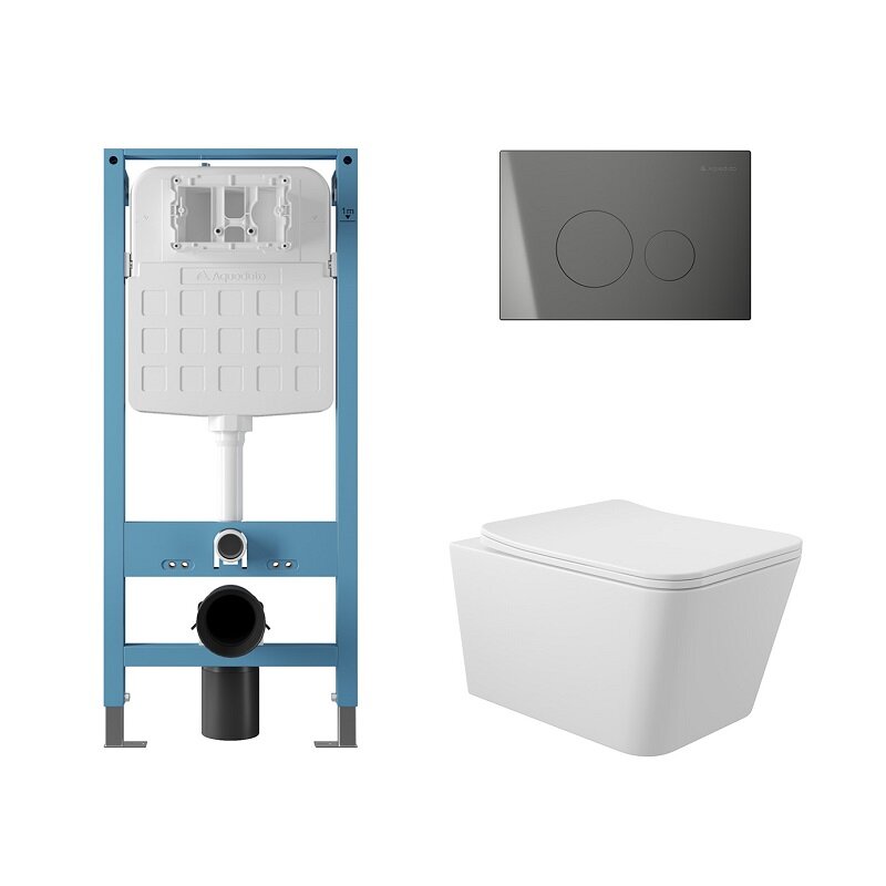 Aqueduto AQDS225 AQD комплект: TECNICA Novo Система инсталляции для подвесного унитаза, CIRCULO Novo Панель смыва, оружейная сталь, MACIO Унитаз подвесной 520*370 безободковый, сиденье с микролифтом, белый глянцевый