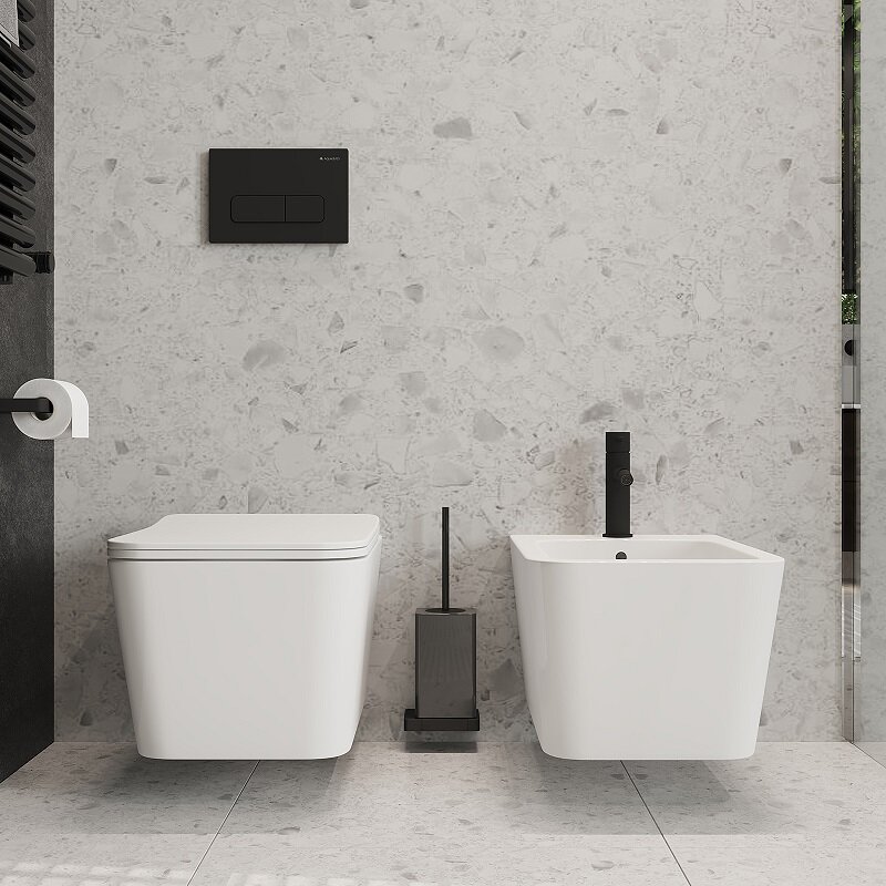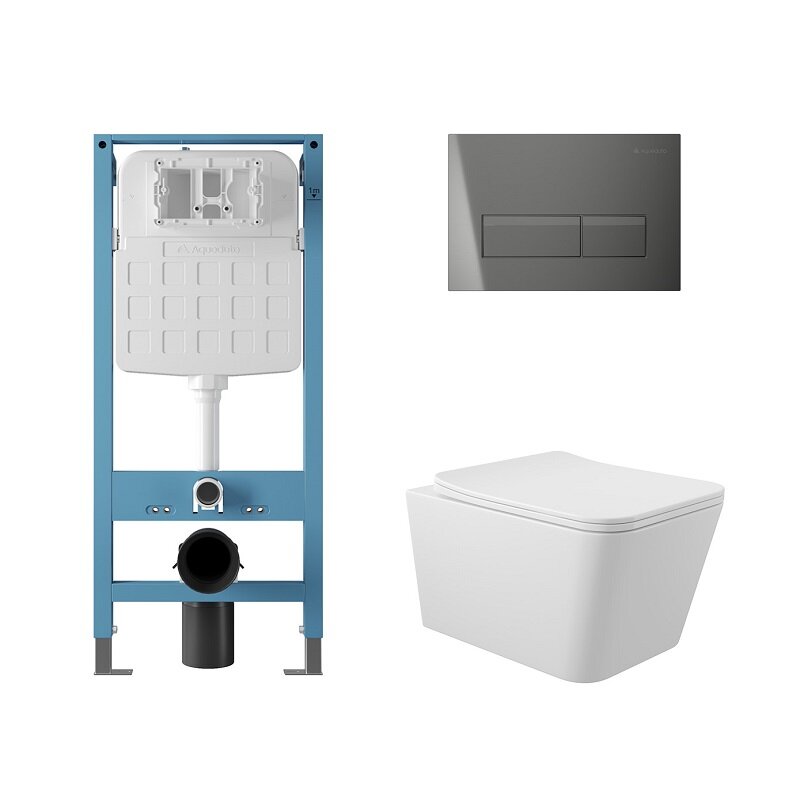 Aqueduto AQDS243 AQD комплект: TECNICA Novo Система инсталляции для подвесного унитаза, RETANGULO Novo Панель смыва, оружейная сталь, MACIO Унитаз подвесной 520*370 безободковый, сиденье с микролифтом, белый глянцевый