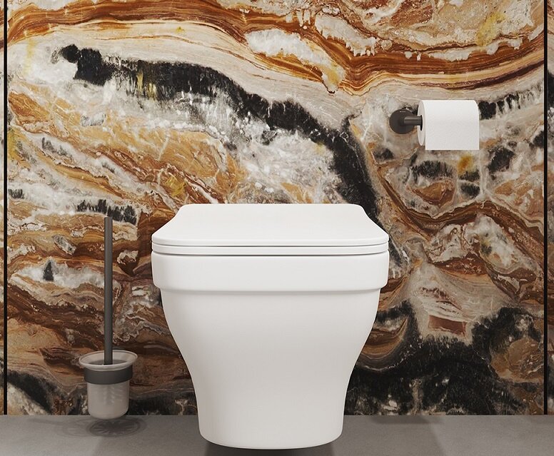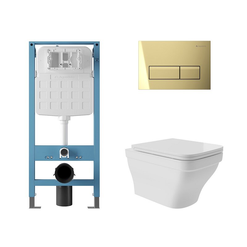 Aqueduto AQDS258 AQD комплект: TECNICA Novo Система инсталляции для подвесного унитаза, RETANGULO Novo Панель смыва, шлифованное золото, ESTETA Унитаз подвесной 520*370 безободковый, сиденье с микролифтом, белый глянцевый