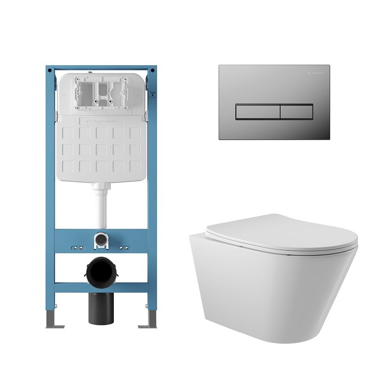 Aqueduto AQDS345T AQD комплект: TECNICA Novo Система инсталляции для подвесного унитаза, RETANGULO Панель смыва, хром, CONE Tornado Унитаз подвесной 525*360 безободковый, Tornado, сиденье с микролифтом, белый глянцевый