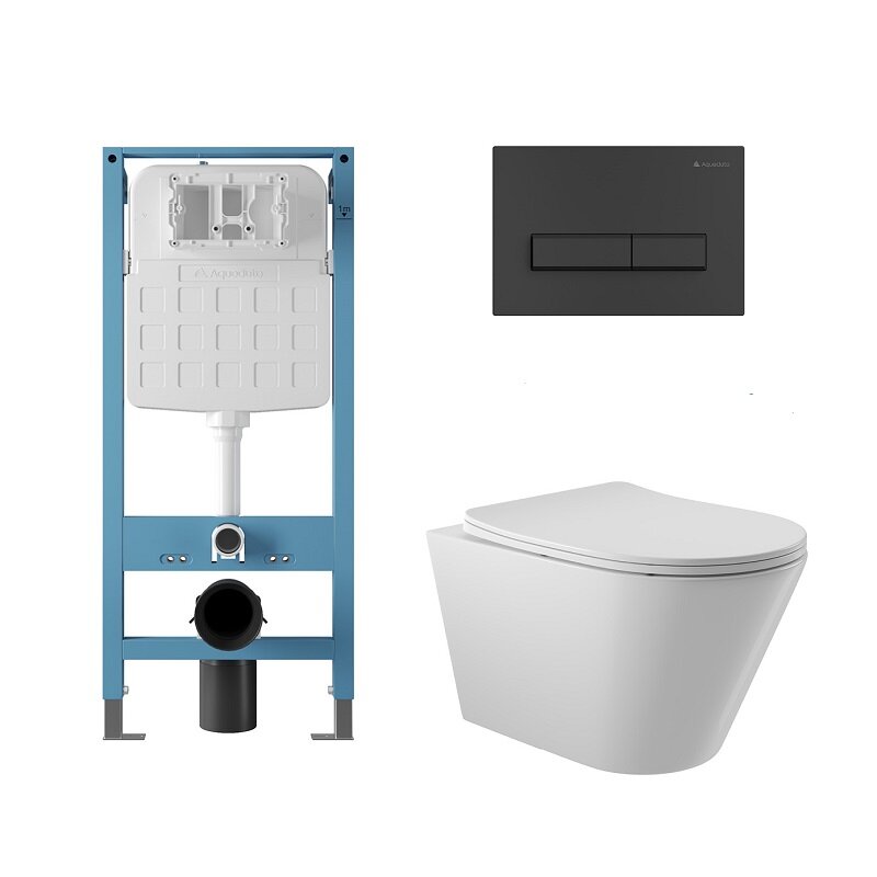 Aqueduto AQDS347T AQD комплект: TECNICA Novo Система инсталляции для подвесного унитаза, RETANGULO Панель смыва, черный матовый, CONE Tornado Унитаз подвесной 525*360 безободковый, Tornado, сиденье с микролифтом, белый глянцевый
