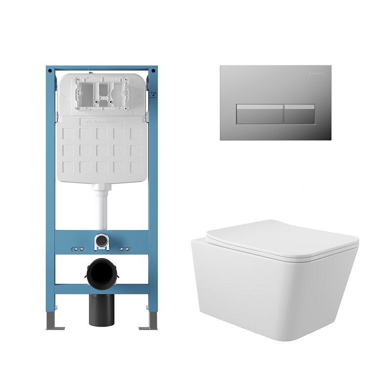 Aqueduto AQDS370T AQD комплект: TECNICA Novo Система инсталляции для подвесного унитаза, RETANGULO Novo, Панель смыва, хром, MACIO Tornado Унитаз подвесной 520*370 безободковый, Tornado, сиденье с микролифтом, белый глянцевый