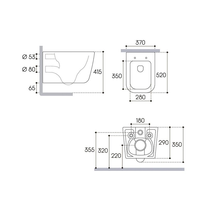 Aqueduto AQDS372T AQD комплект: TECNICA Novo Система инсталляции для подвесного унитаза, RETANGULO Novo, Панель смыва, черный матовый, MACIO Tornado Унитаз подвесной 520*370 безободковый, Tornado, сиденье с микролифтом, белый глянцевый
