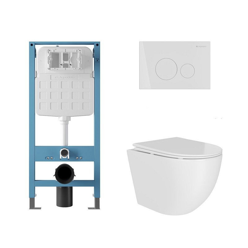 Aqueduto AQDSD005 AQD комплект: TECNICA Novo Система инсталляции для подвесного унитаза, CIRCULO Novo Панель смыва, белый глянцевый, OVO Tornado Daily Унитаз подвесной 490*360 безободковый, Tornado, сиденье с микролифтом, белый глянцевый