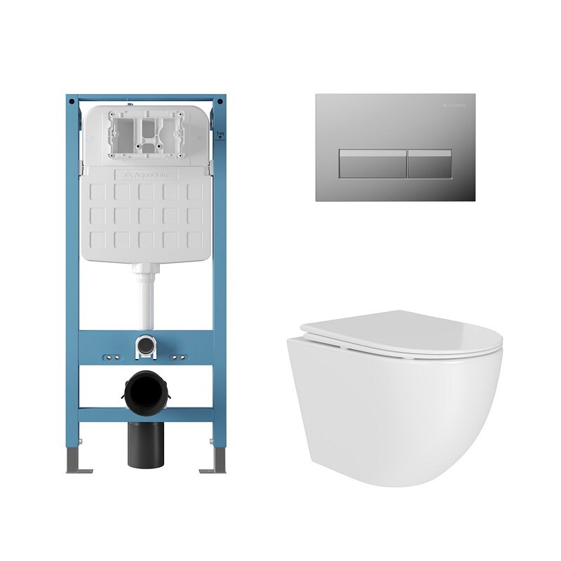Aqueduto AQDSD008 AQD комплект: TECNICA Novo Система инсталляции для подвесного унитаза, RETANGULO Novo Панель смыва, хром, OVO Tornado Daily Унитаз подвесной 490*360 безободковый, Tornado, сиденье с микролифтом, белый глянцевый