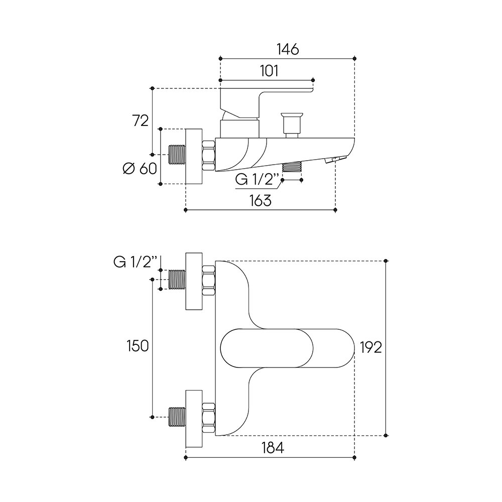 Aqueduto BAS0600 AQD BASE Смеситель для ванны, хром