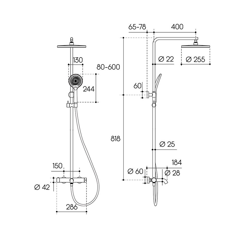 Aqueduto CHU0200 AQD CHUVA Душевая система с изливом для ванны, хром