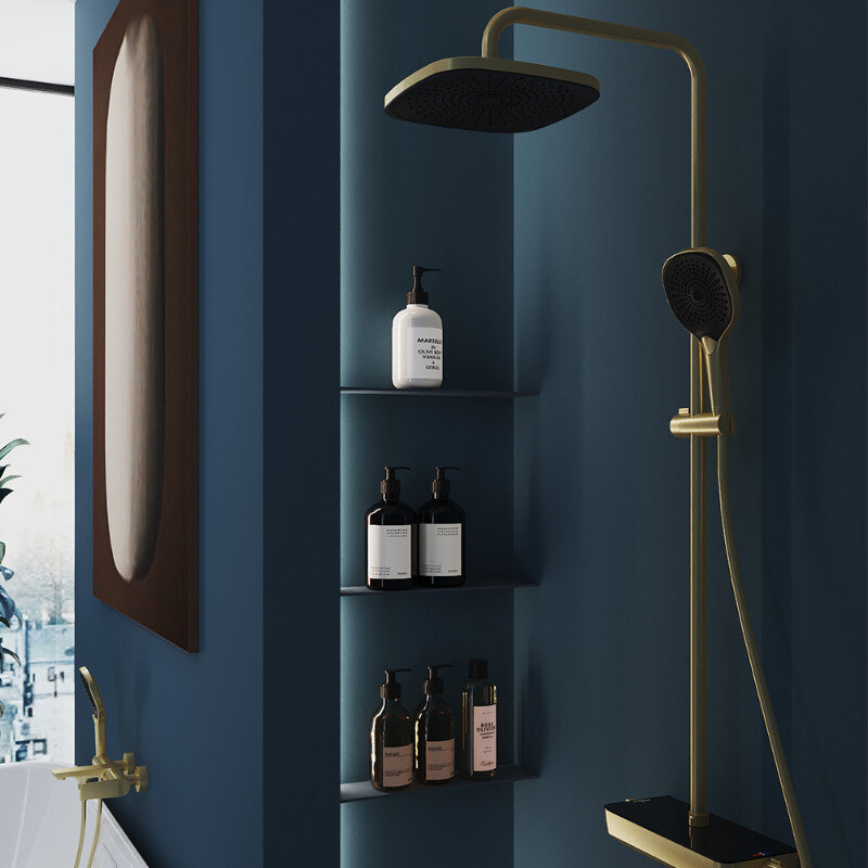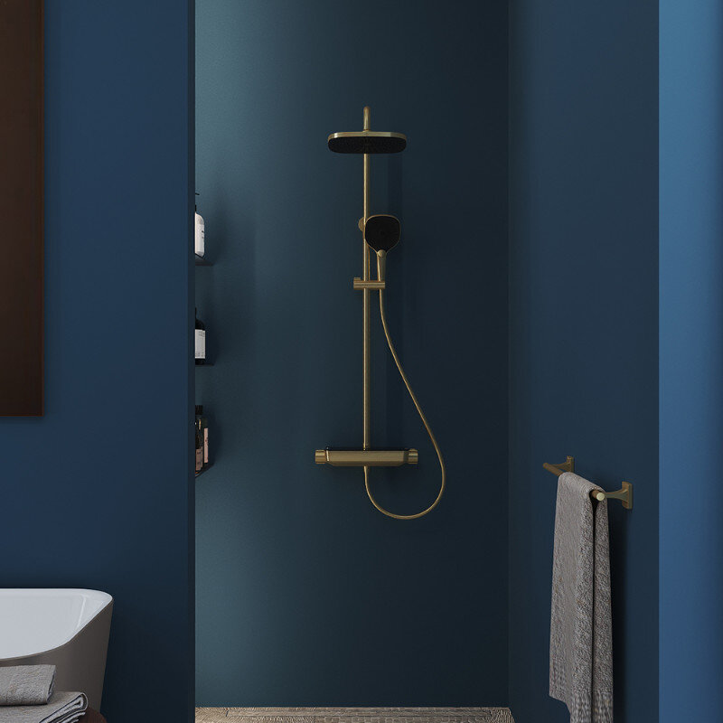 Aqueduto CHU0350 AQD CHUVA Душевая система с термостатическим смесителем, шлифованное золото
