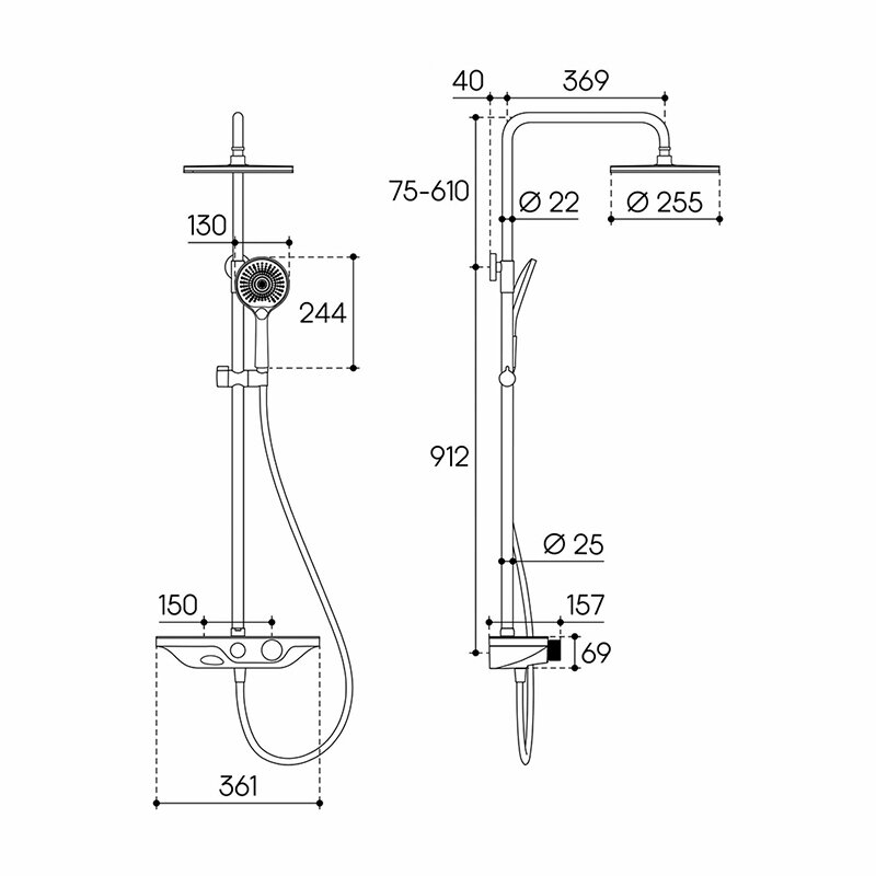 Aqueduto CHU0445 AQD CHUVA Душевая система с изливом, оружейная сталь