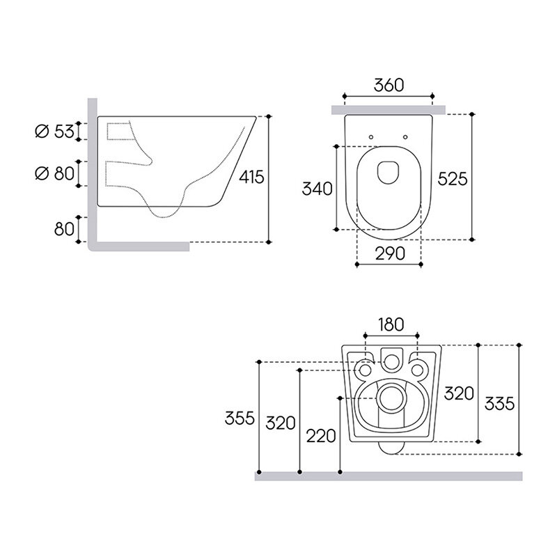 Aqueduto CON0120 AQD CONE Унитаз подвесной 525*360 безободковый, сиденье с микролифтом, белый матовый