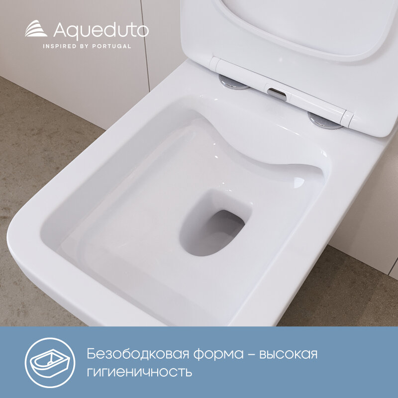 Aqueduto EST0120 AQD ESTETA Унитаз подвесной 520*365 безободковый, сиденье с микролифтом, белый глянцевый