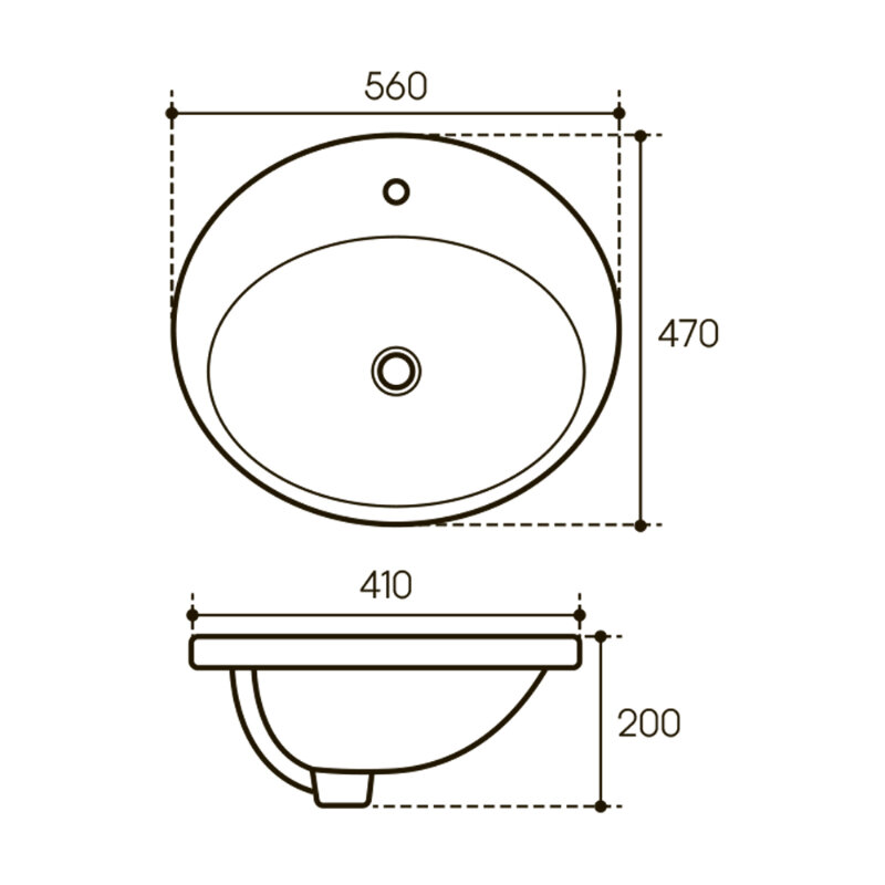 Aqueduto INS0310 AQD INSERTO Раковина врезная овальная с отверстием под смеситель 560*490, белый глянцевый