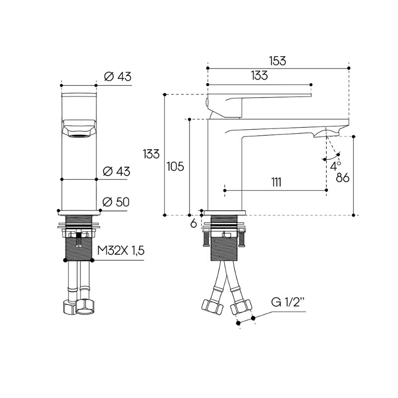 Aqueduto LIN0150 AQD LINHA Смеситель для раковины S, шлифованное золото