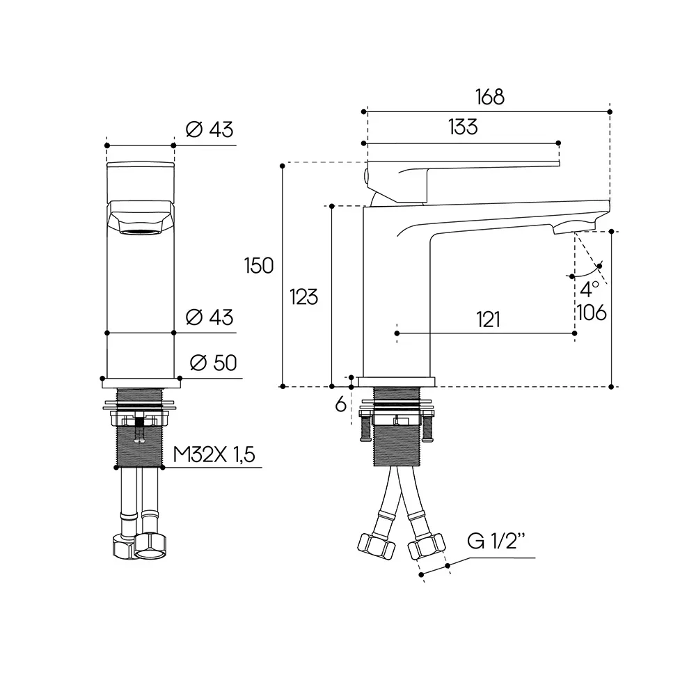 Aqueduto LIN0245 AQD LINHA Смеситель для раковины M, оружейная сталь