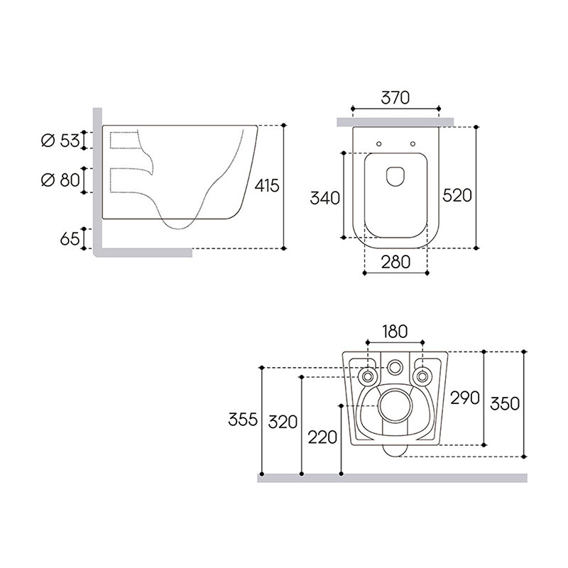 Aqueduto MAC0130 AQD MACIO Унитаз подвесной 520*370 безободковый, сиденье с микролифтом, серый матовый