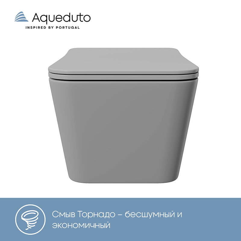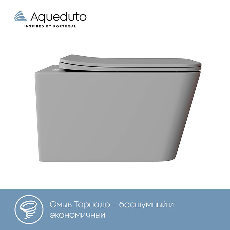 Aqueduto MACT2130 AQD MACIO Tornado Унитаз подвесной 520*370 безободковый, Tornado, сиденье с микролифтом, серый матовый
