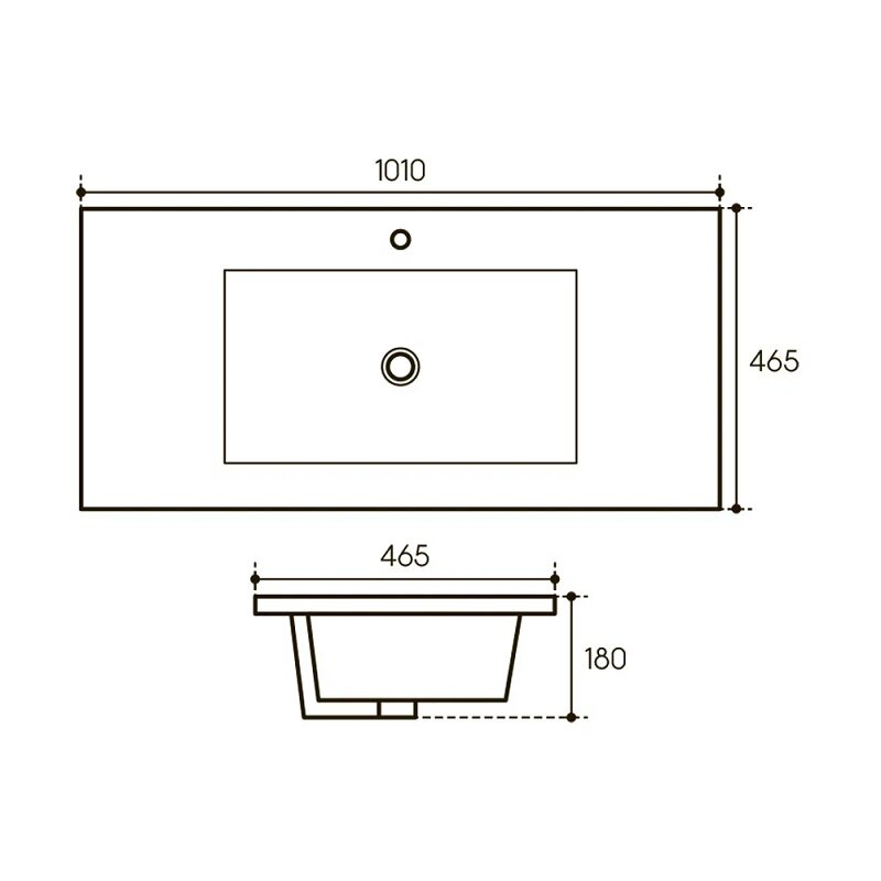 Aqueduto MON1110 AQD MONOLITO Раковина мебельная 1000*465, покатый борт, белый глянцевый