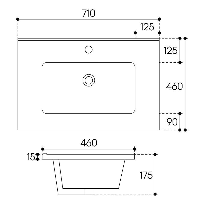 Aqueduto MON2710 AQD MONOLITO Раковина мебельная 700*460, прямой борт, белый глянцевый
