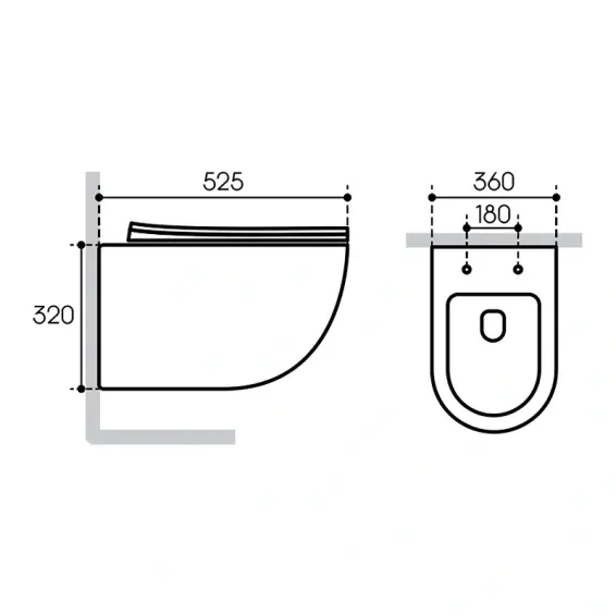 Aqueduto OVO OVO0130 Унитаз подвесной 525*360 безободковый, сиденье с микролифтом, серый матовый