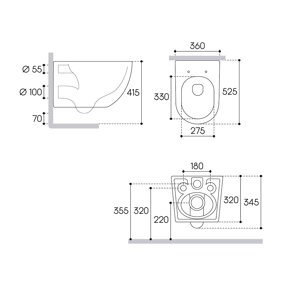 Aqueduto OVOT2120, Унитаз подвесной (смыв Tornado), белый матовый