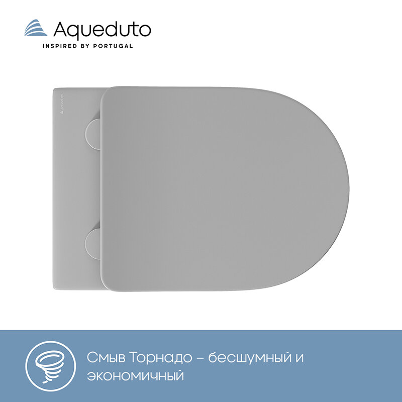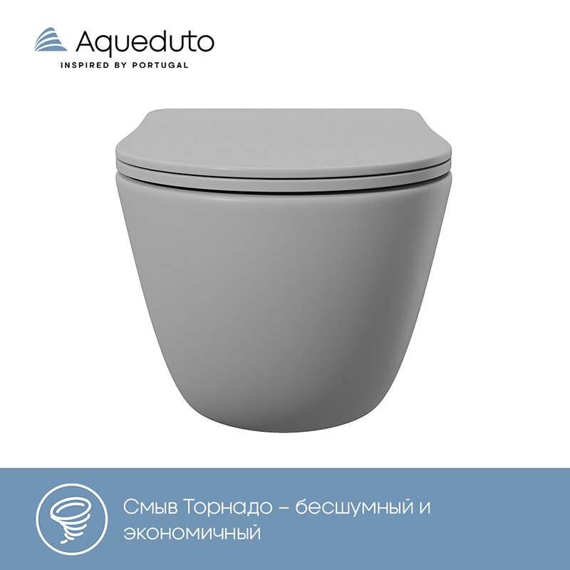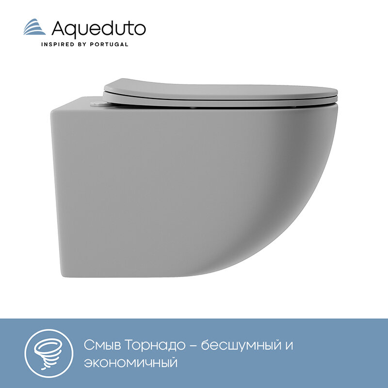 Aqueduto OVOT2130 AQD OVO Tornado Унитаз подвесной 525*360 безободковый, Tornado, сиденье с микролифтом, серый матовый