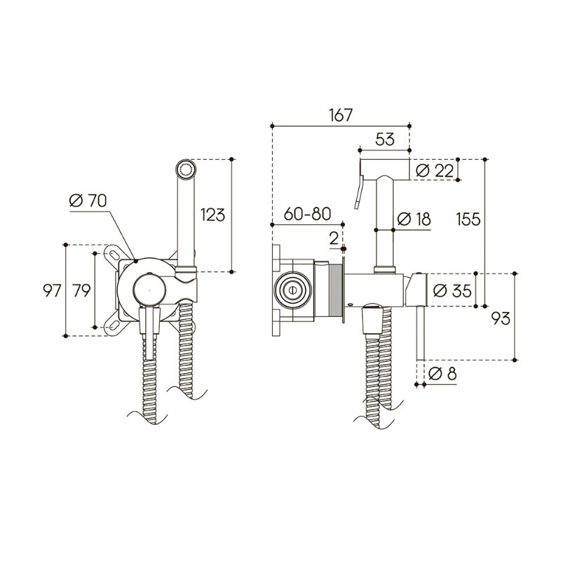Aqueduto PUR0200 AQD PUREZA Смеситель скрытого монтажа с гигиеническим душем, со скрытой частью, хром