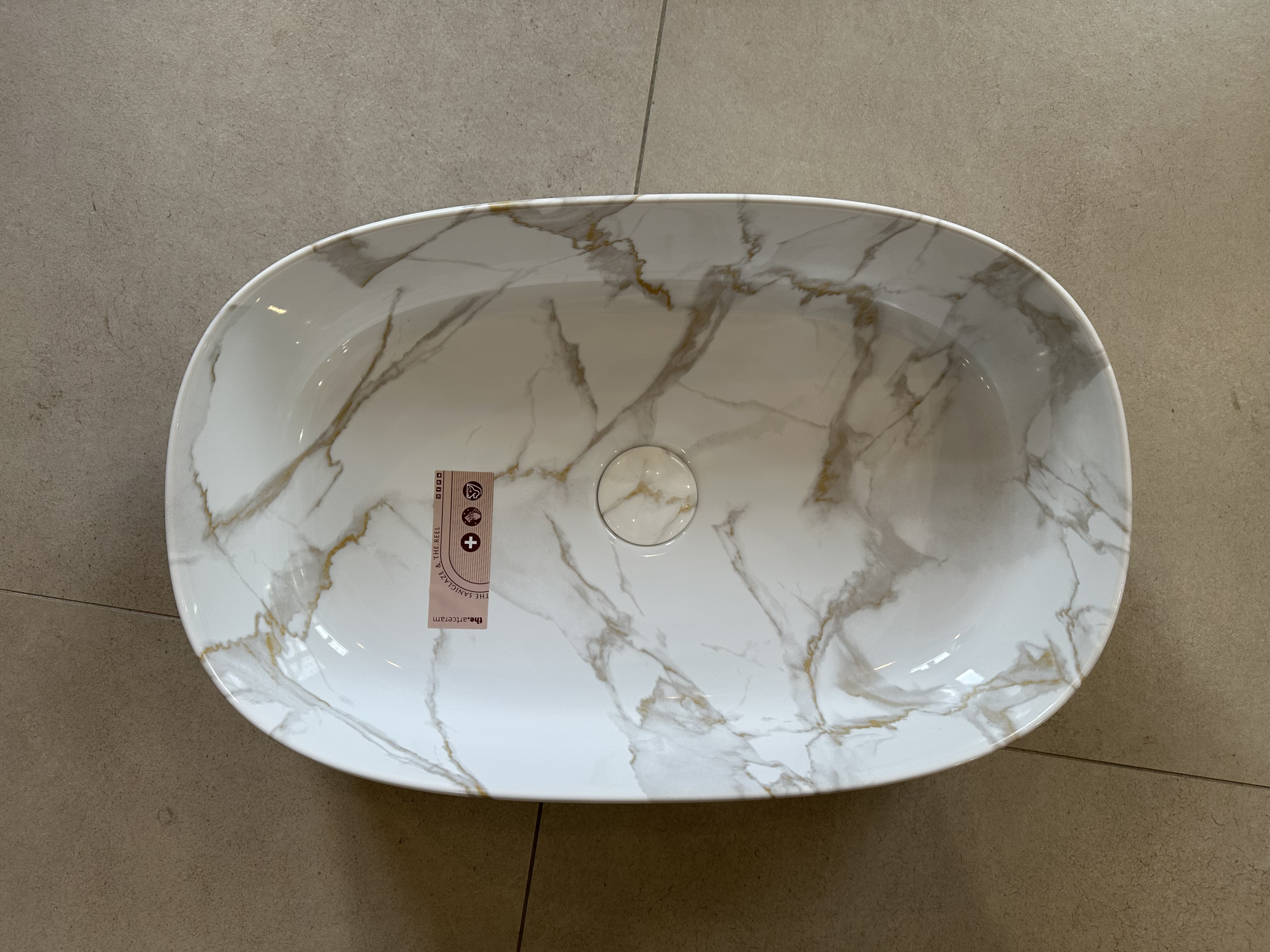 ArtCeram COL003 94 34 ArtCeram COGNAC Раковина накладная , 55х35 см, без отв под смеситель, без слив-перелива, цвет calacatta/покрытие Saniglaze%