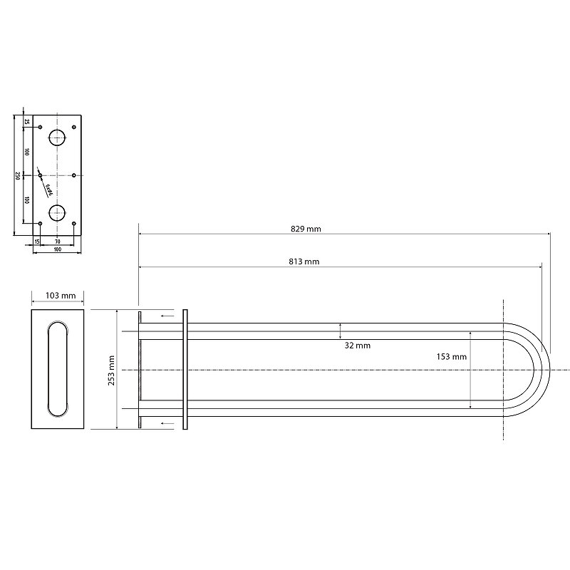 Bemeta 301707460 HELP: Поручень U-образный, 813 мм, с крышками чернить