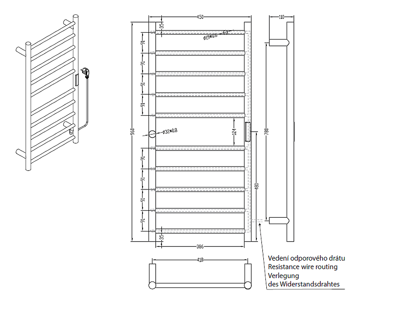 Bemeta 704151044 Электрический полотенцесушитель 450x960mm, 130W, белый