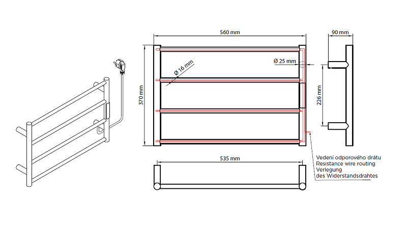 Bemeta 704155085 Электрический полотенцесушитель 500х110х630мм, 63W, нержавеющая сталь, матовая, графит