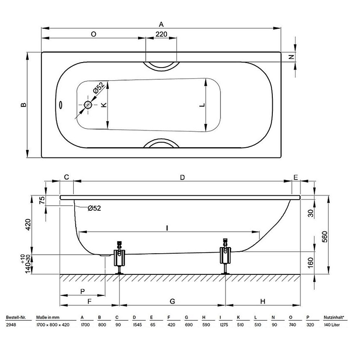 Bette Form 2948-000 AD Ванна встраиваемая, стальная, с шумоизоляцией 170х80х42см., цвет: белый