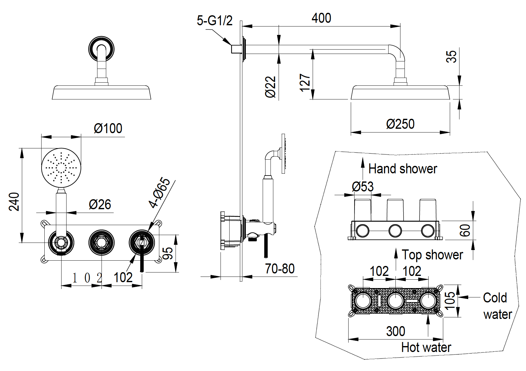 Boheme Eterna 174-MG Душевая система встраиваемая, цвет: золото матовое