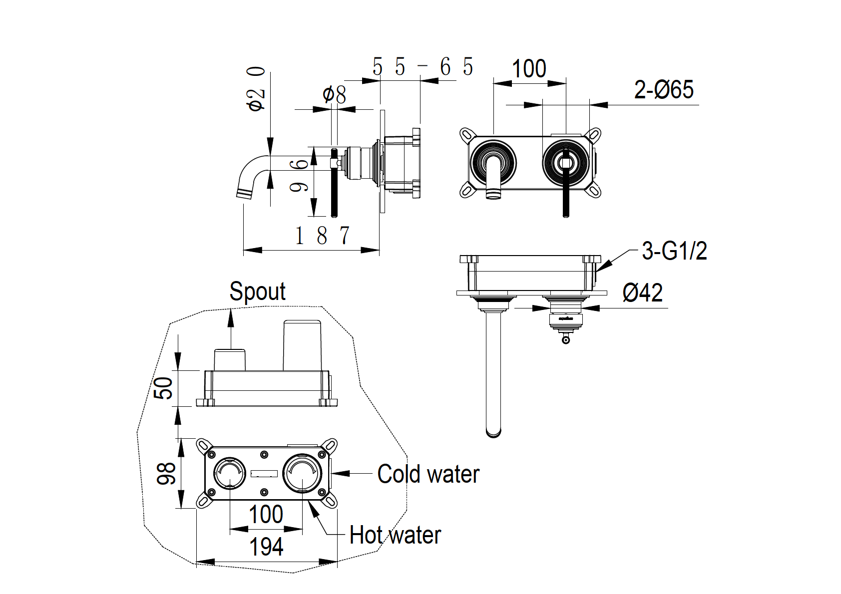 Boheme 175-GM Смеситель для умывальника из стены, ETERNA GUN METAL