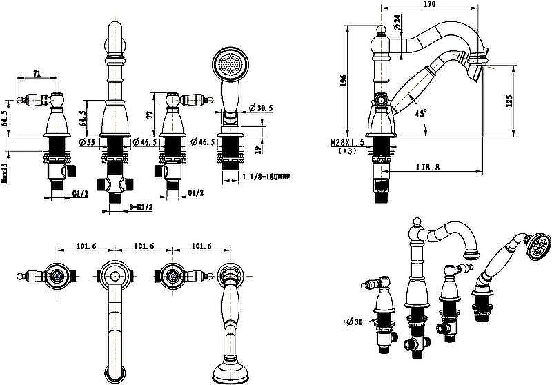 Boheme Royal 395-ROYAL Смеситель на борт ванны