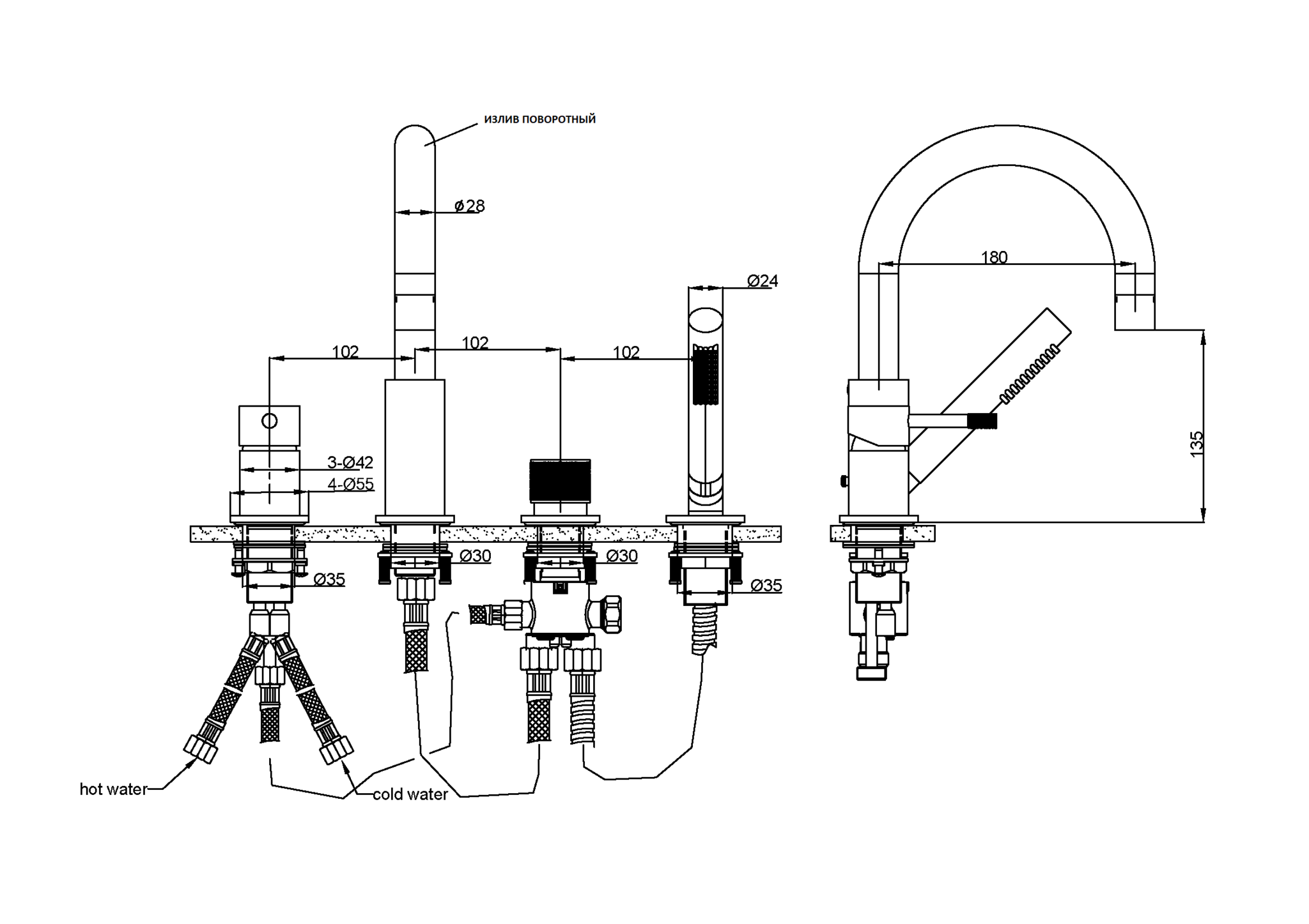 Смеситель на борт ванны Boheme Uno 460-BRB Брашированная бронза. Характеристики: Материал: латунь. Механизм: керамический картридж. Управление: однорычажное. Излив: фиксированный. Тип излива: традиционный. Диаметр ручного душа: 24 мм. Количество режимов струи ручного душа: 1. Стандарт подводки: 1/2. Тип подводки: гибкая. Монтаж: на борт ванны. Отверстия для монтажа: 4.