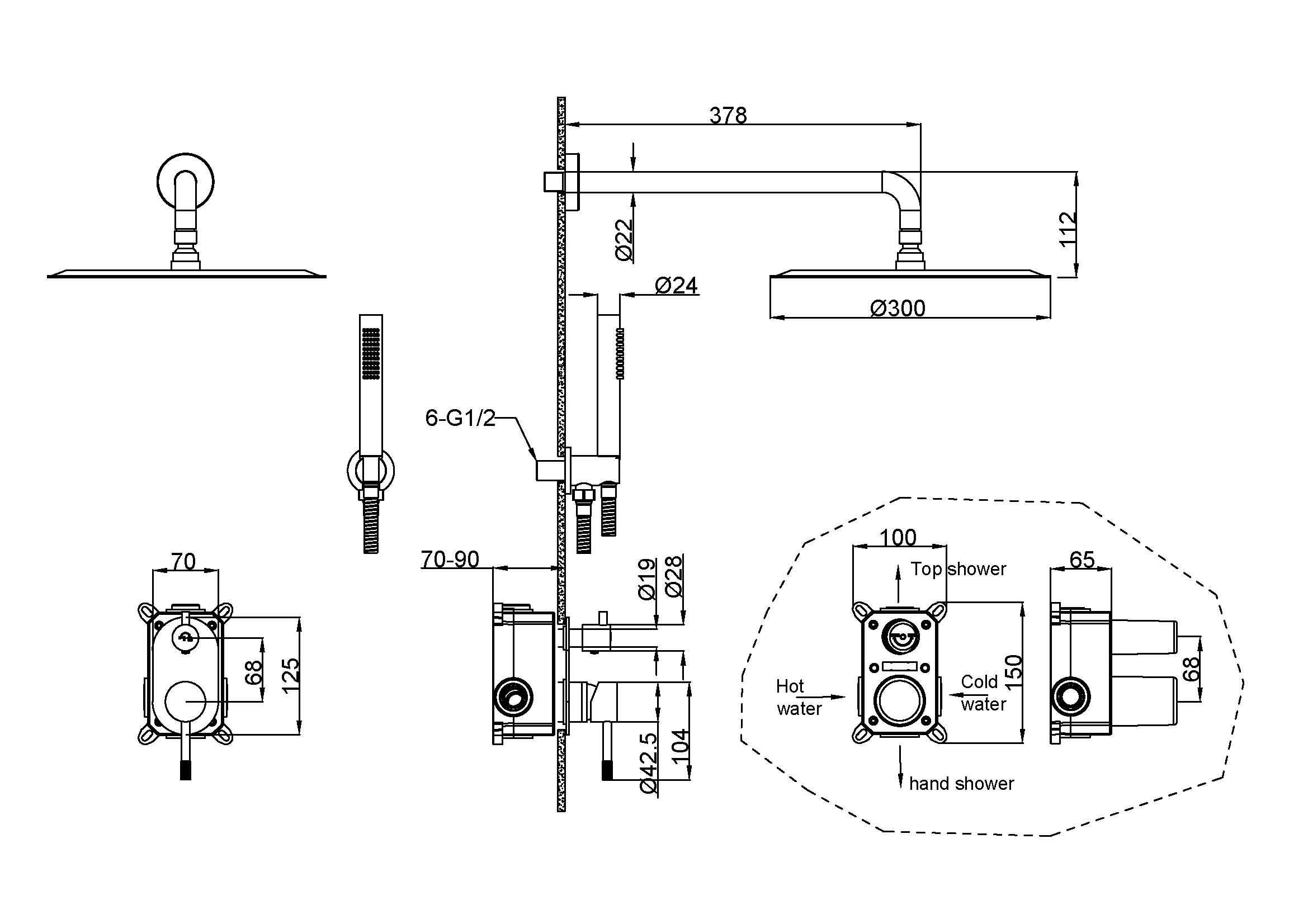 Boheme 464-BRB Смеситель встроенный + верхний+ ручной душ Uno BRUSHED BRONZE