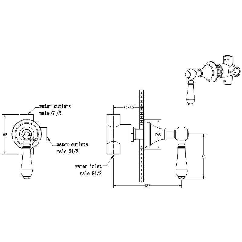 Boheme 624-B Дайвертер встраиваемый, латунь Brillante черная керамика_Комплект
