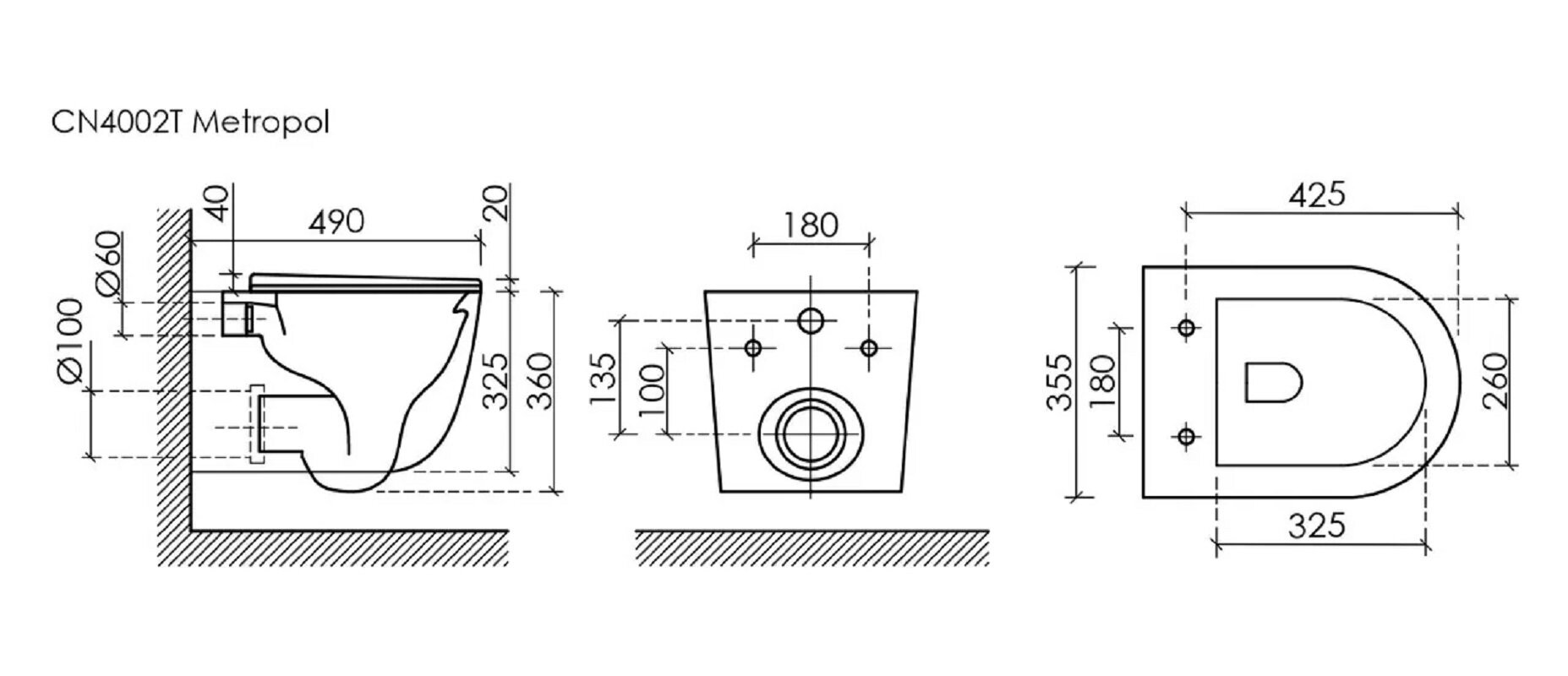 Унитаз Ceramicanova Metropol CN4002TMB подвесной.