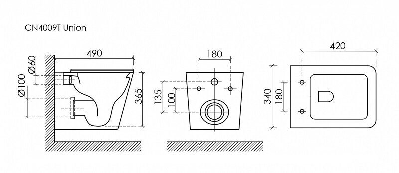 Ceramica Nova Union CN4009T Унитаз подвесной, цвет: белый
