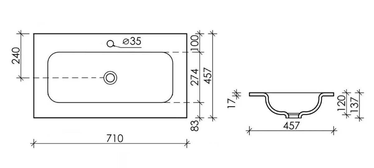 Ceramica Nova CN7031 Раковина накладная мебельная CERAMICANOVA Grace 710x457x137 с отв. под смеситель, белый CN7031