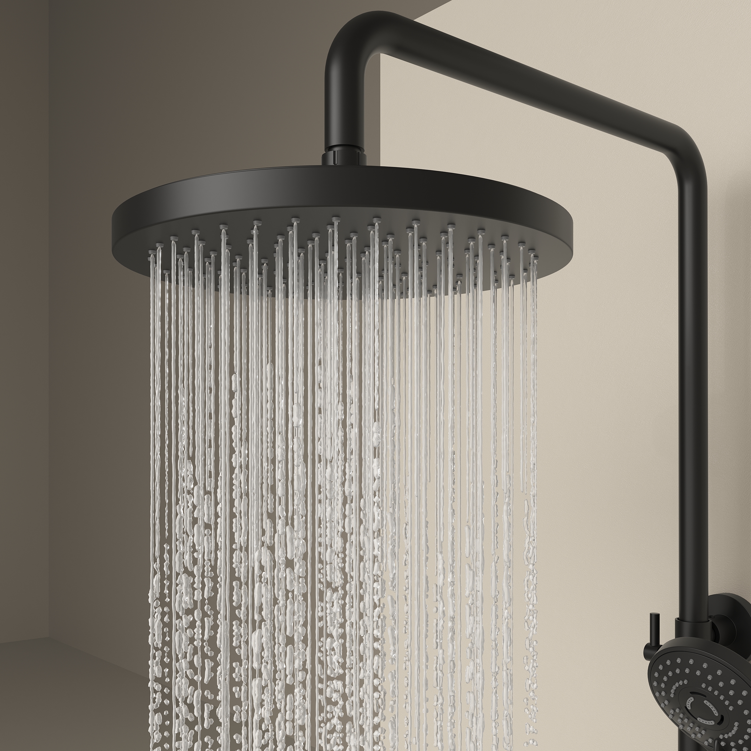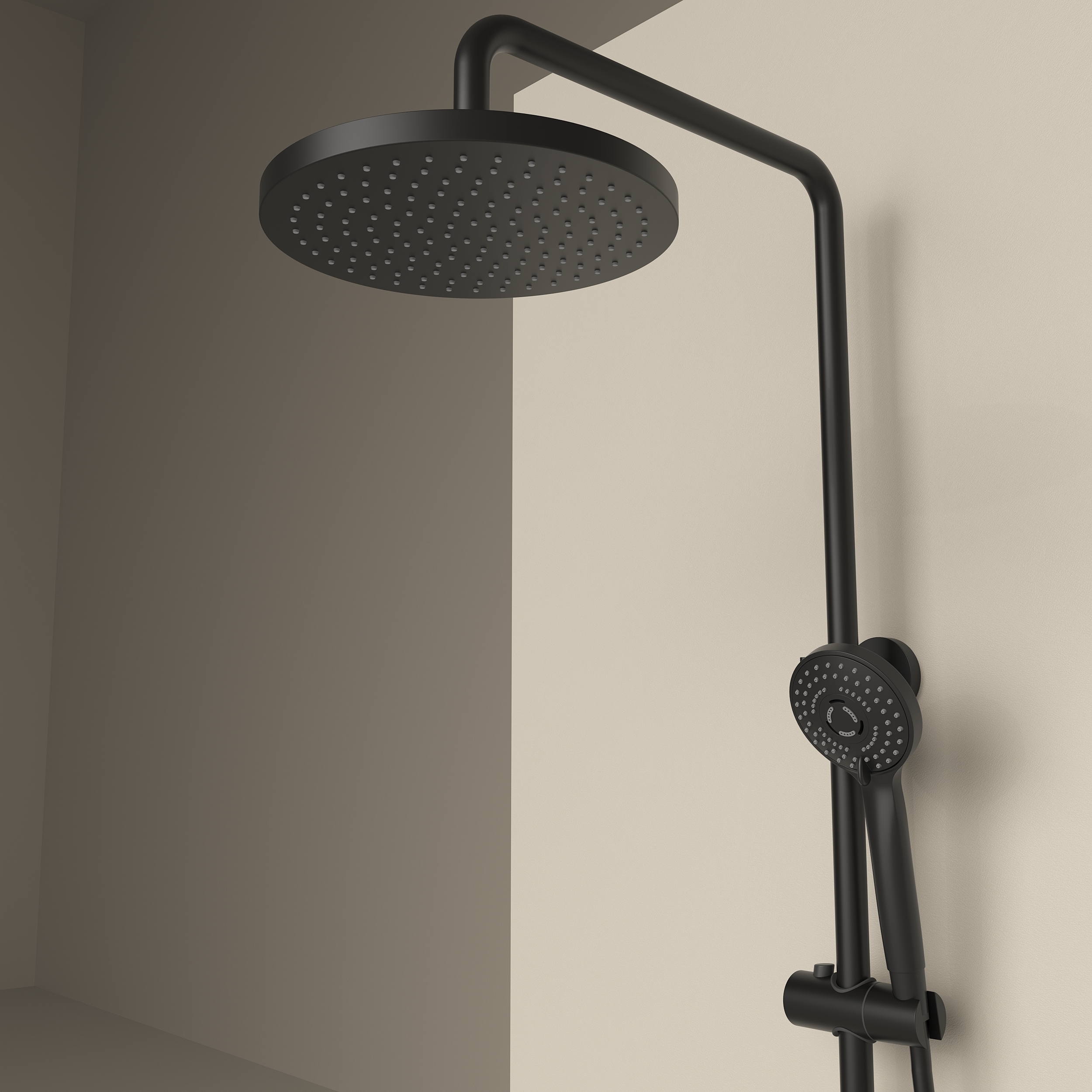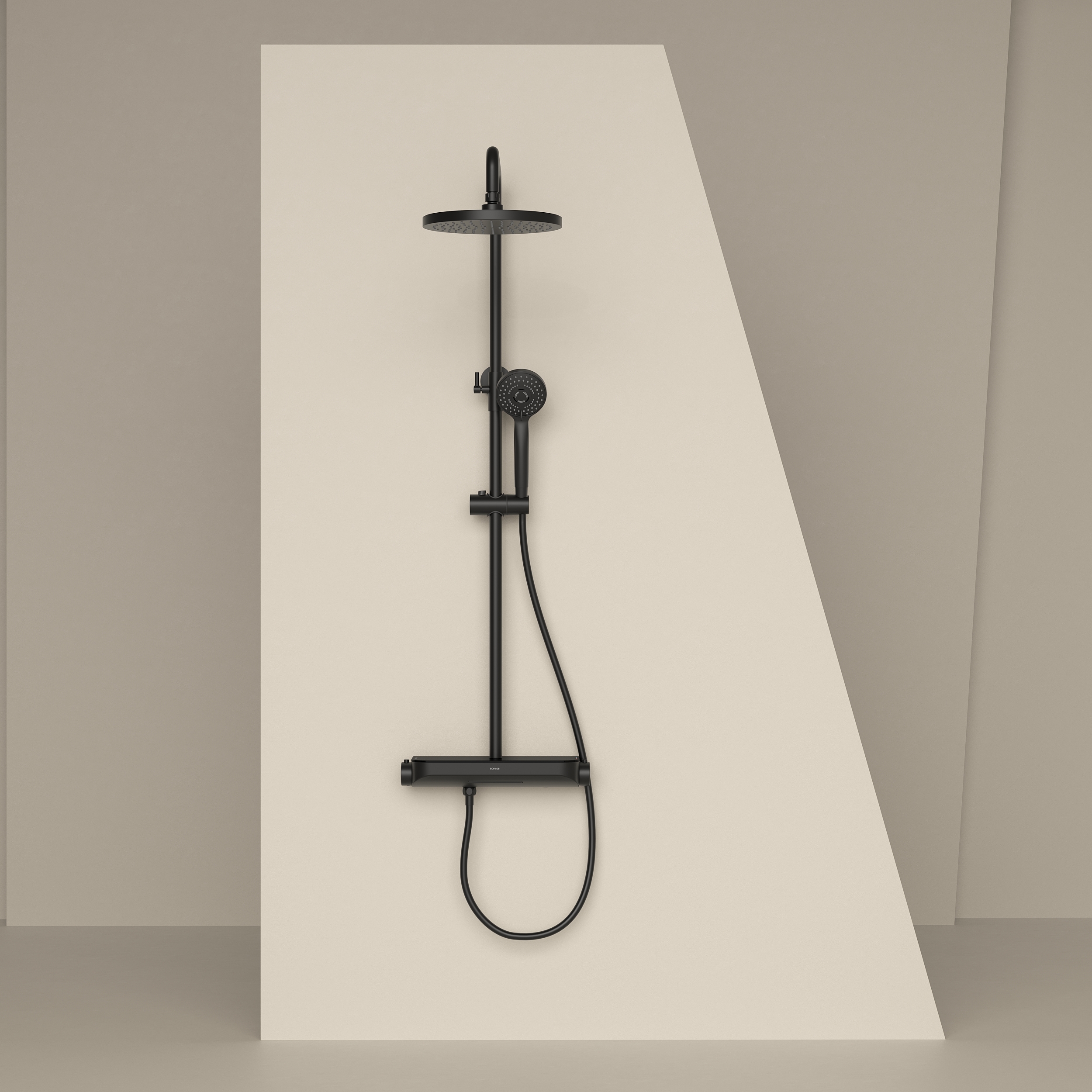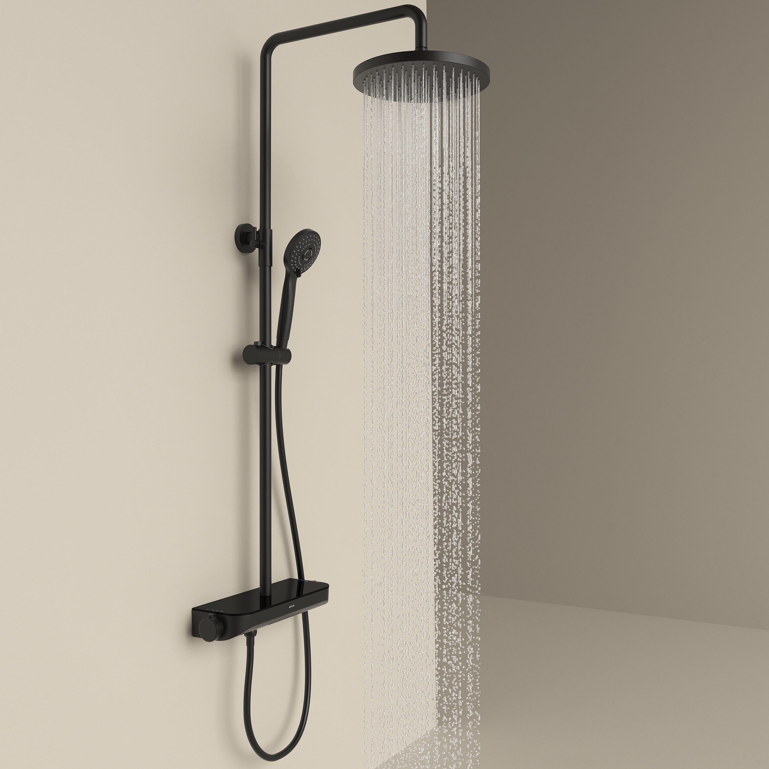Sancos Teo SC11002MB Душевая стойка c термостатом, изливом и полкой, цвет: черный матовый