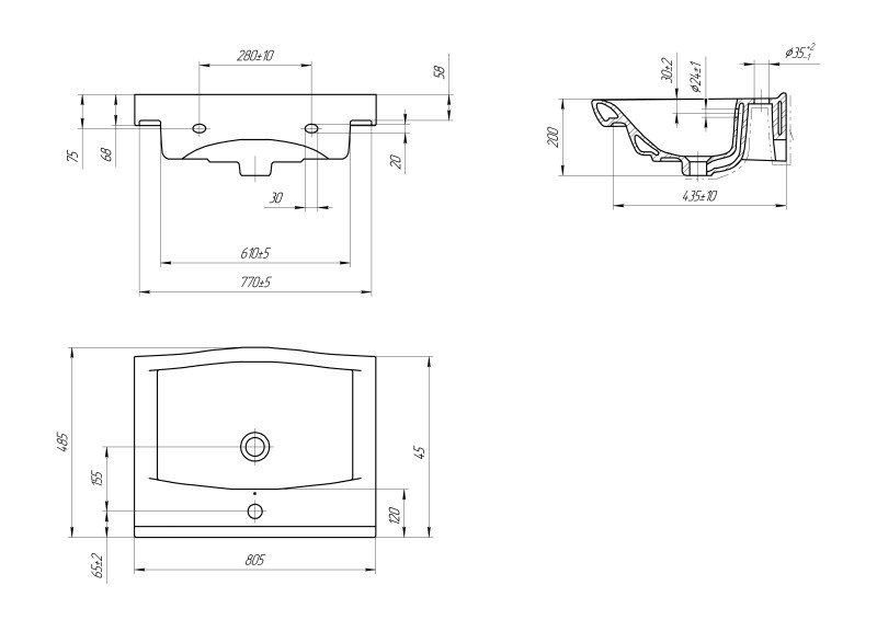 Cersanit 64042 Раковина универсальная STRIM 80 1 отв.