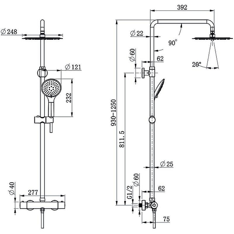 Cersanit 64526 Душевая система Cersanit BRASKO (смеситель термостатический) 3 режима шланг 150 металл