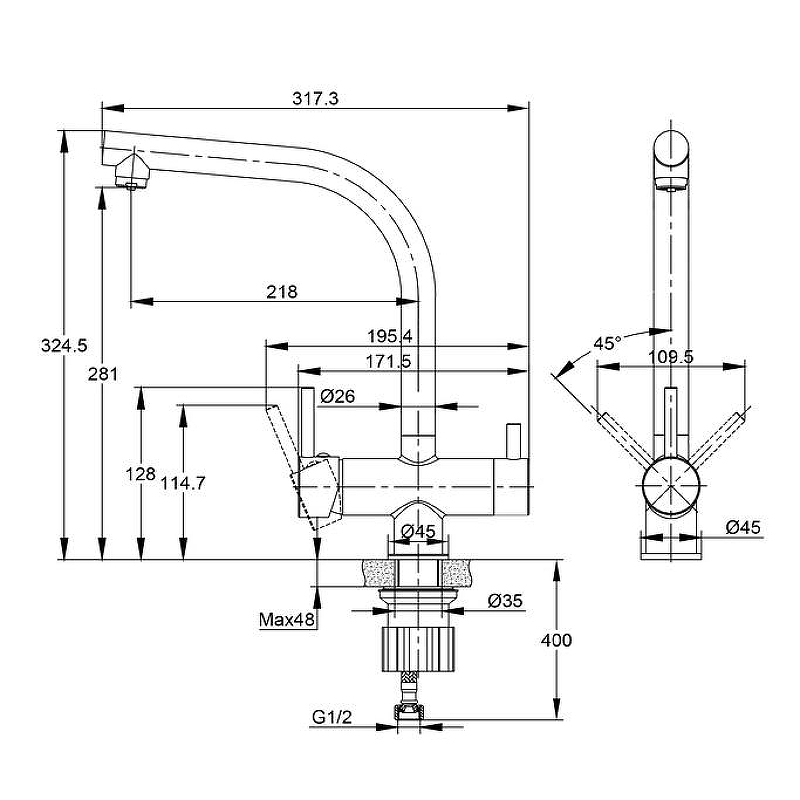 Cersanit 68223 Смеситель для кухни CREA однорычажный с фильтром черный